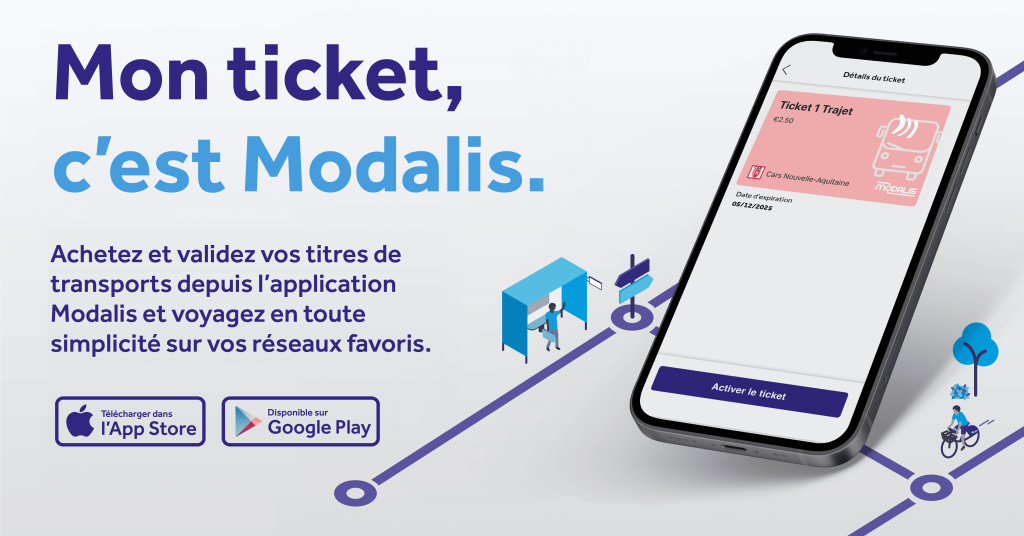 Depuis le 4 mars 2026, l’achat des titres Cars Nouvelle-Aquitaine se fera sur l’application Modalis (iOS et Android), remplaçant Ticket Modalis.